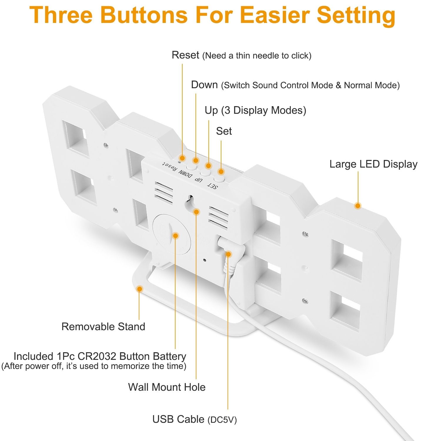 *Sound Control Mode*:Easily set the sound control mode to enable LED auto off in 30s. Just press the Down button and choose 'onSd' for sound control mode and clap your hands to light up the screen(any sounds louder than 70dB) or by tapping the clock.