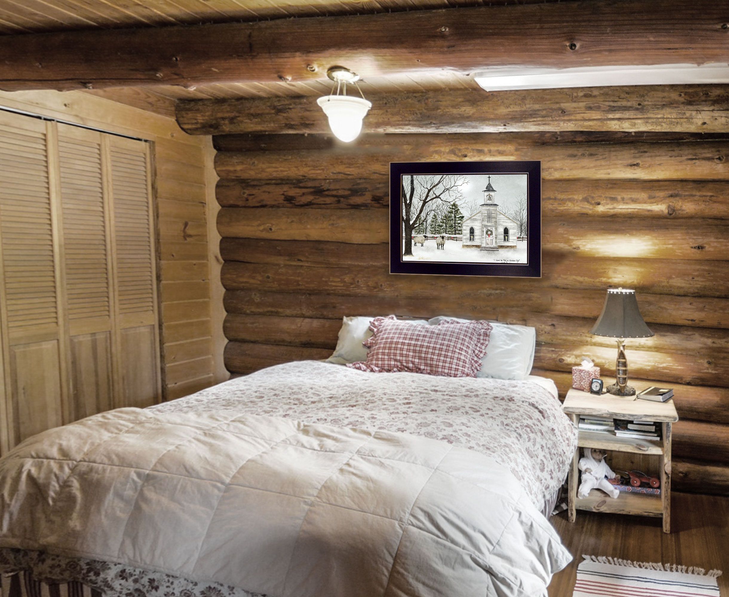 BJ1098-712 I Heard the Bells on Christmas painting by Billy Jacobs; a old church setting in the country with sheep around it. 16x12 print size (framed size is 18x14) framed in a decorative black frame. The surface of the print is textured with a fade resistant coating so no glass is necessary. Arrives ready to hang. Made in the USA by skilled American workers. •TEXTURED ARTWORK with a 'rolled on' acid-free acrylic coating to create a canvas painting effect.•UV PROTECTANT COATING protects artwork from fading. No glass is necessary.• MOULDING adds natural beauty to the framed art. Frame is keyholed for the easy hanging.•THIS FINE HOME DECOR piece made in the USA by Woman Owned Business (WBE) is a perfect gift for a friend or relative.