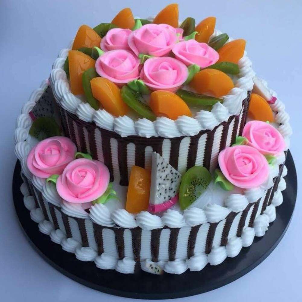 Artificial Double-layer Cake Simulation Rose Fruit Birthday Cake Replica Prop Party Decoration; 10 inches