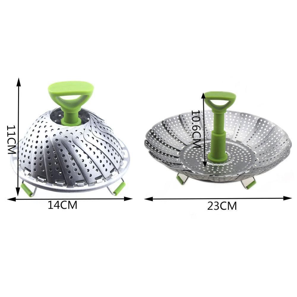 Expandable and foldable – The folded diameter of the vegetable steamer is 14 cm. After the petals are stretched, it will expand to 23 cm.