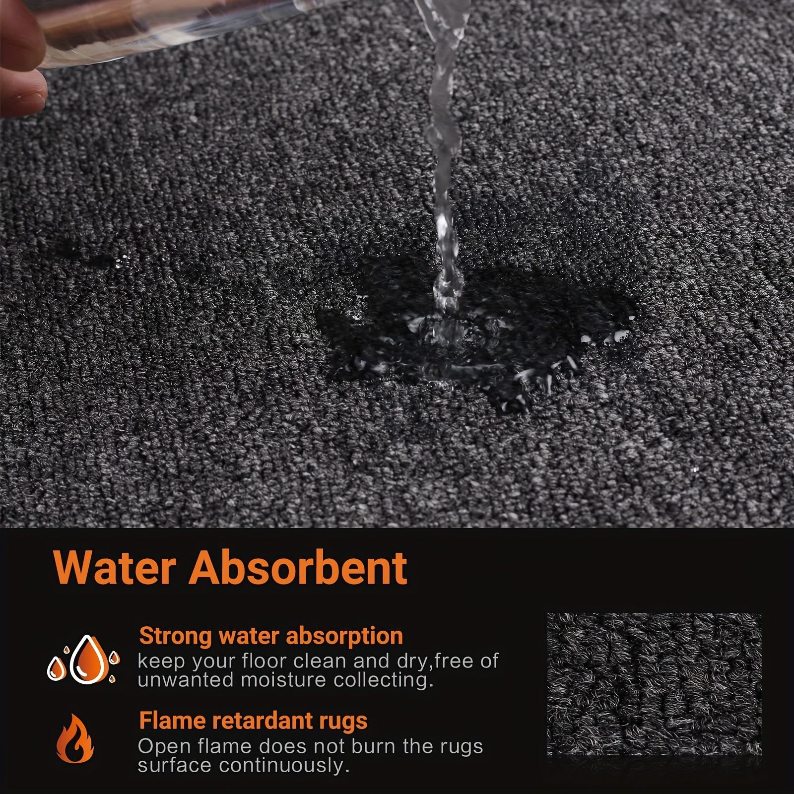 [SUPER ABSORBENT & NON-SLIP]The small particles on the bottom of the rubber backing have a strong grip to prevent the rubber door mat from sliding. The polyester surface of the washable door mat can absorb water like a sponge and help keep your floor hygienic and clean.