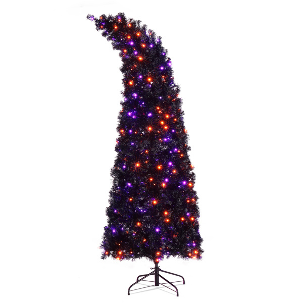 7ft Wizard Hat Shape Automatic Tree Structure PVC Material 1050 Branches 400 Lights 10 Functions With Remote Control Christmas Tree Purple And Orange