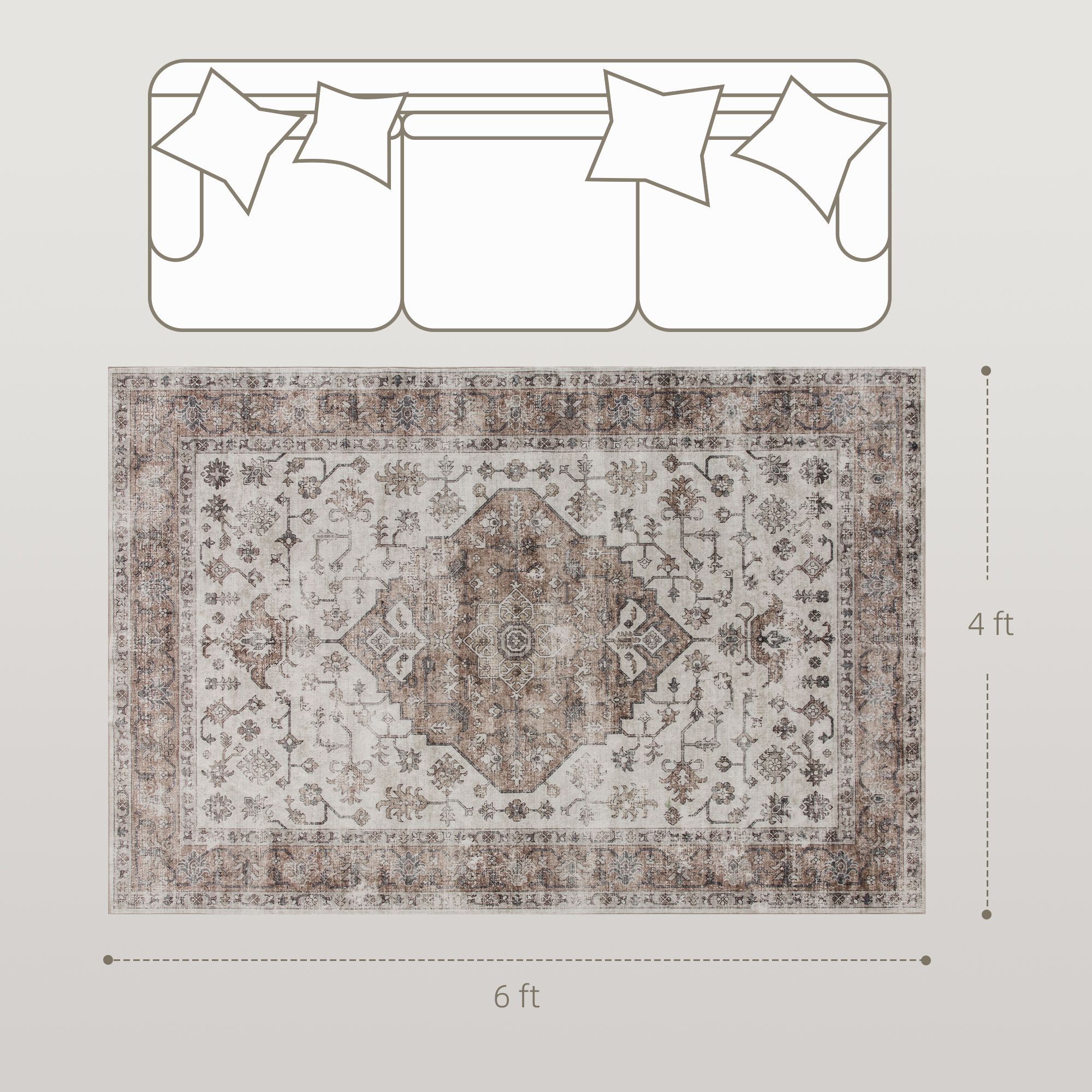 Home > HOMCOM 4x6 Area Rug, Vintage Machine Washable Rug, Non-Slip Floor Carpet for Living Room, Bedroom, Dining Room, Tan