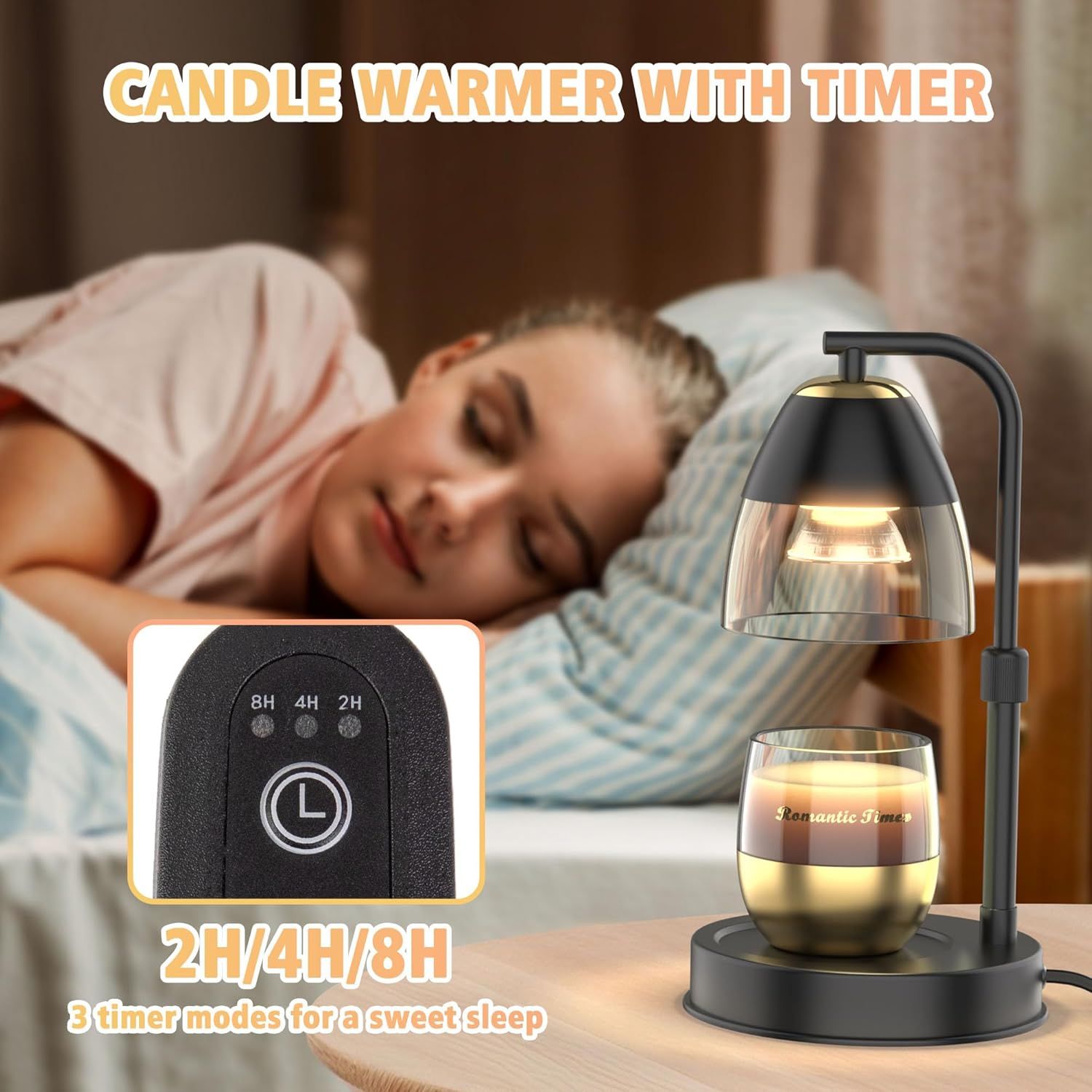 RAINBEAN Candle Warmer Lamp with Timer and Dimmer, Height Adjustable Electric Candle Lamp Warmer for Jar Scented Candles Dimmable Candle Melter