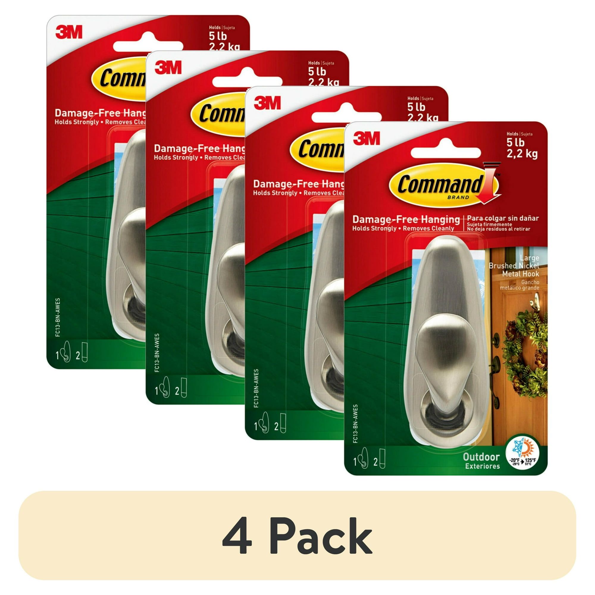 (4 Pack) Command Outdoor Hook, Large, Brushed Nickel – Weather-Resistant Wall Hooks with Adhesive Strips, Holds up to 5 lbs (4 Pack) Command Outdoor Hook, Large, Brushed Nickel – Weather-Resistant Wall Hooks with Adhesive Strips, Holds up to 5 lbs