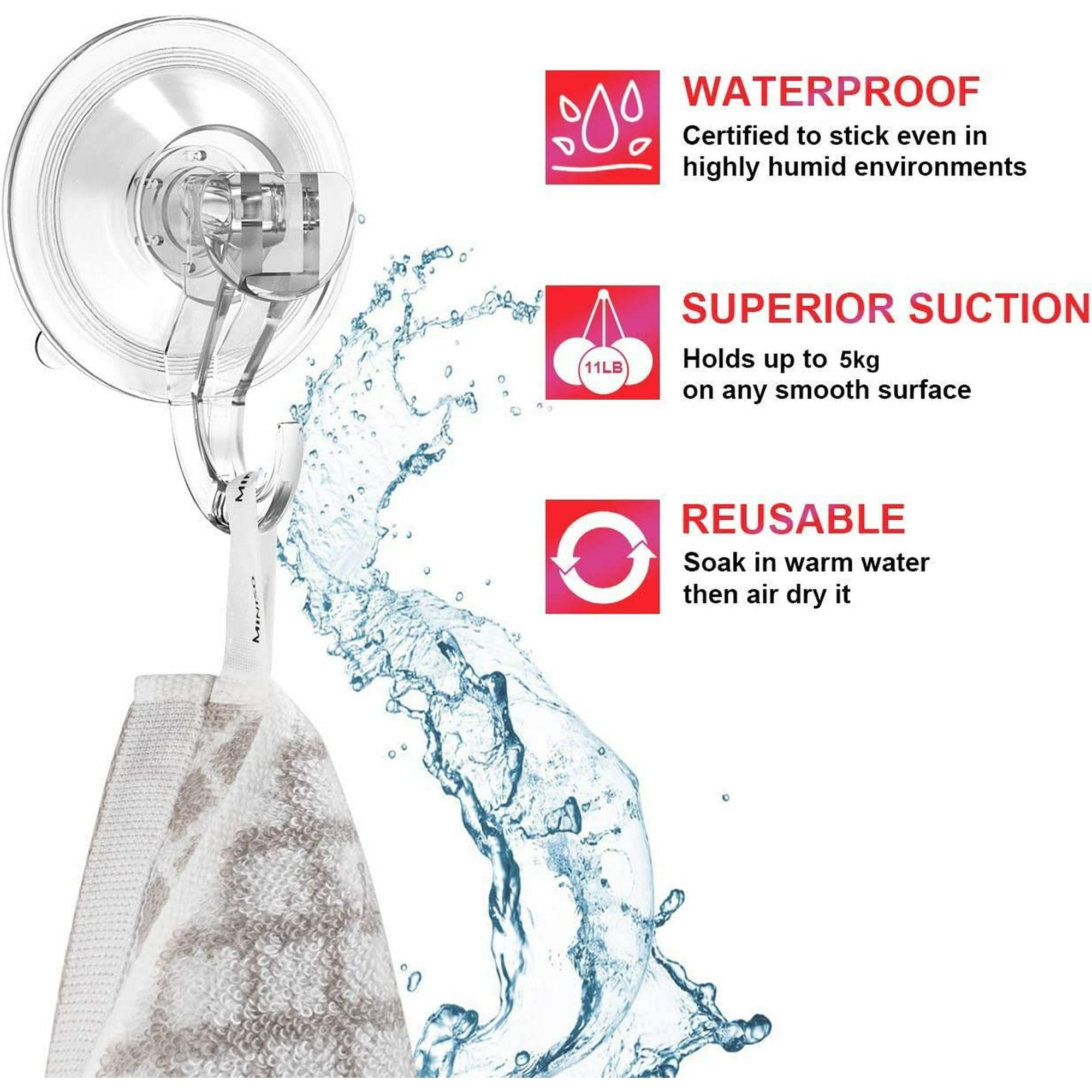 LUXEAR Suction Cup Hooks, Heavy-Duty Clear Reusable Shower & Wall Hooks – Waterproof Vacuum Seal for Kitchen, Bathroom, Window & Seasonal Decor