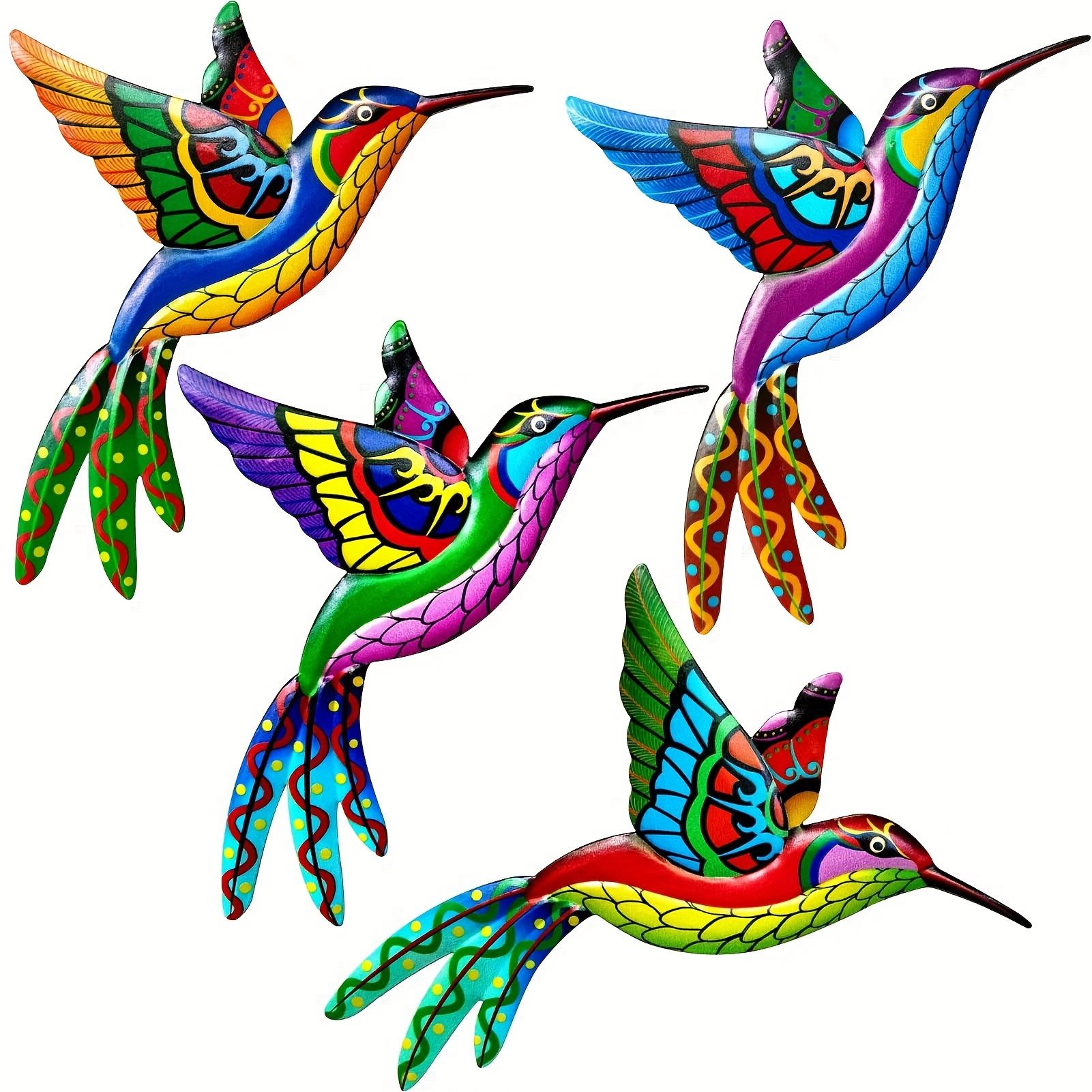 Home > 1pc/4pcs, Metal Hummingbird Wall Art Decor, Metal Colorful Birds 3D Outdoor Sculpture, Iron Outdoor Hanging Decor Ornaments